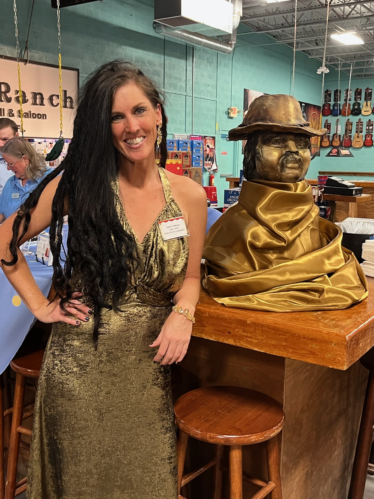 On March 23, a representative group of Sisters attended the Taste of Love 2025 Extravaganza at the Ranch Concert Hall and Saloon in Fort Myers, supporting the AGD signature charity, Special Equestrians of Fort Myers, which raised over $300,000 this year! Featured under dazzling gold and black décor and lit by hundreds of LED sparking lights, were silent auctions, live auctions, wine tasting, a brewery, and 12 culinary stations provided by local chefs and eateries. A special attraction was a unique cake display created by Janette Delaney, a local baker and artiste. Guesses as to the identity of the personification of this treat ranged from Teddy Roosevelt, Burt Reynolds, and Charles Bronson to Pancho Villa. It was a truly remarkable confection that was then served to all of us as dessert – yum!