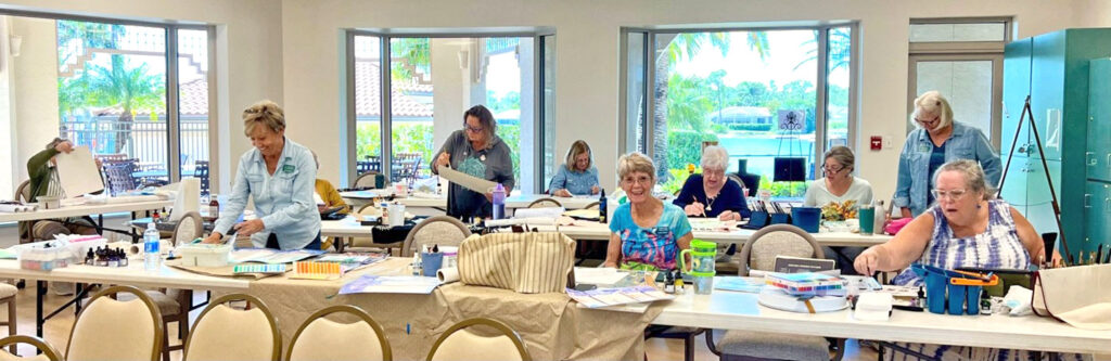 Some of our activities include monthly meetings on the third Monday of the month starting October 20 at 5 p.m. Besides catching up with friends, there are presentations on topics such as framing, printing your original art, and artwork critiques. We have a beautiful Christmas dinner on Friday, December 12 in the restaurant. There are art classes in Activities Room A on Monday, Tuesday and Friday, from 9 a.m. to noon for watercolor, acrylic painting or any artistic endeavor. It’s easy to just drop in and meet fellow artists.