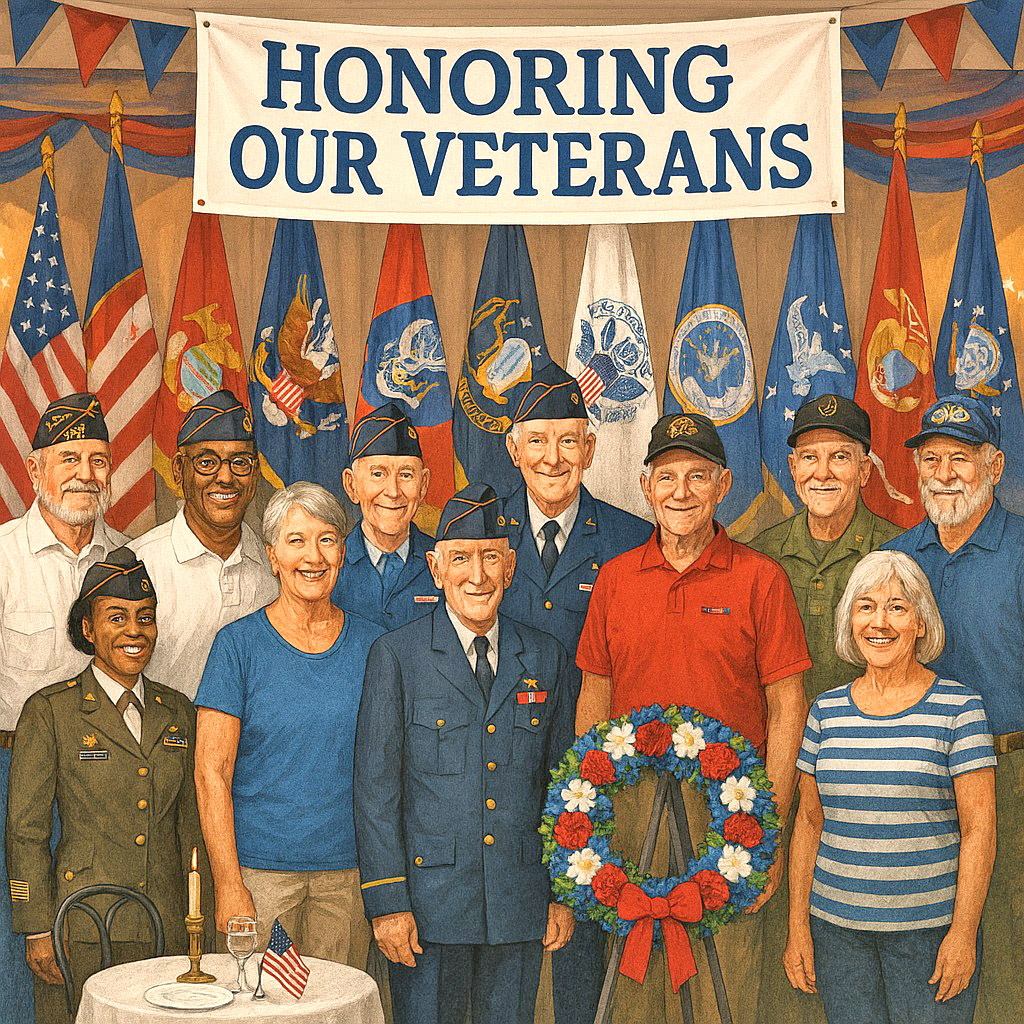 Annual Veterans Day Dinner Dance and Fundraiser (November 11): This signature event features patriotic tributes, music, dancing, and ballroom décor representing all military branches. The evening begins with a solemn ceremony honoring those lost in service, the Pledge of Allegiance, and patriotic songs, followed by a buffet dinner and performance by local bands.