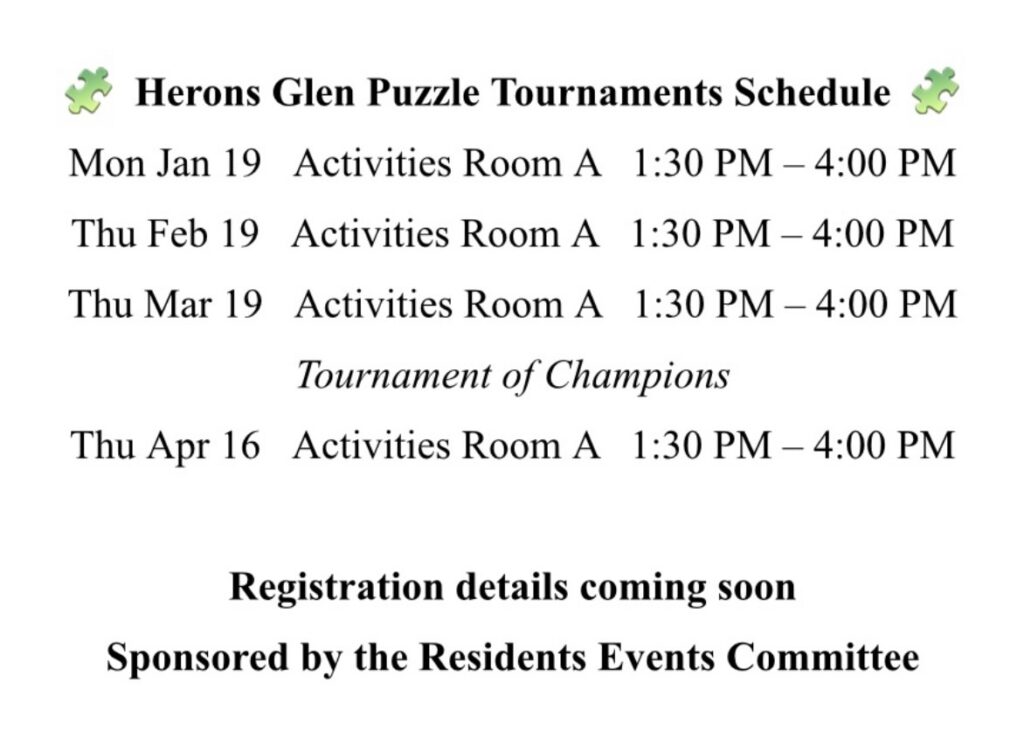 Herons Glen Puzzle Tournaments Schedule
