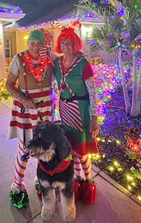 What began as their thoughtful idea quickly blossomed into a heartfelt community effort. Neighbors eagerly embraced the festive spirit, filling Solana with twinkling lights, wreaths, joyful decorations, and even a giant moose who decided to celebrate the season right here with us! For those unable to decorate on their own, Nancy and Arlene were right there, climbing ladders, hanging garland, and making sure every home sparkled with holiday joy. One beloved couple, currently facing significant health challenges, had their home glowing with festive cheer, a beautiful symbol of the love and support that surround them here in Solana.