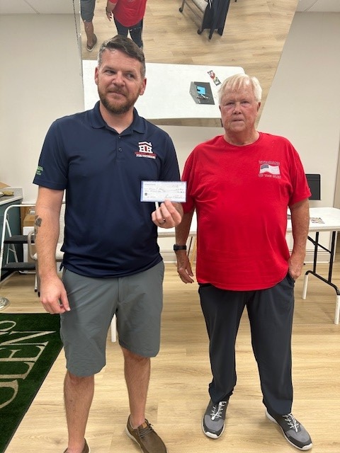 After discussing plans for the November 11, 2026, Veterans Day Dinner Dance and the season-closing picnic in April, Vice President John Bierle introduced Dale Spain from Hearts and Homes. VOG Treasurer Randy Swanson presented him with a check to Hearts and Homes, an organization serving veterans the VOG is proud to support.